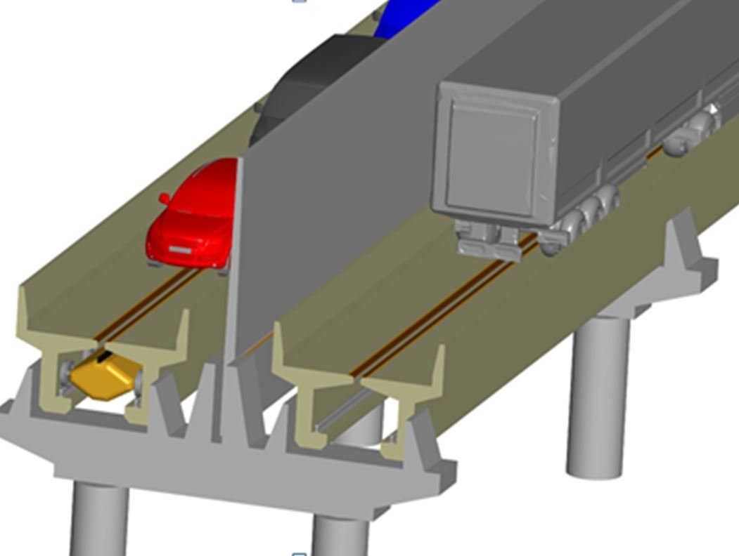 durch wannenförmige Seitenwände der Fahrbahn - Trennwand zwischen Fahrbahnen reduziert